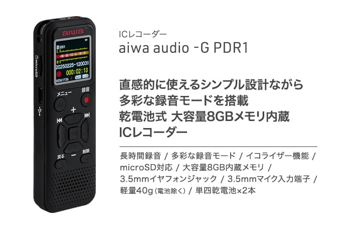 さらにUSB接続でPCへの転送もスムーズ。乾電池式のため充電の手間がなく、また軽量40gのスリム設計で外出先でもストレスフリー。