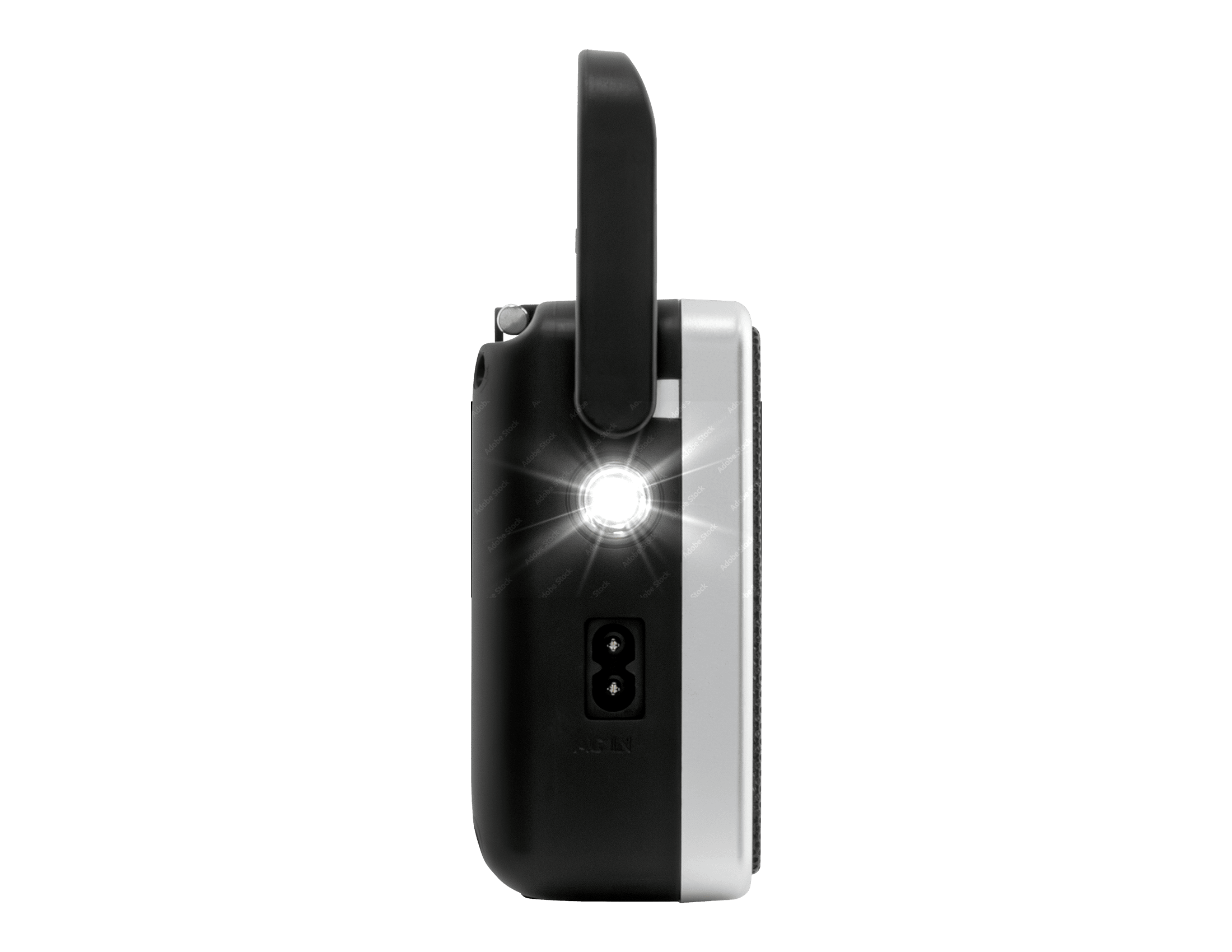 AM/FMラジオに特化した据え置き型モデル。災害時に頼れるLEDライトを搭載し、停電時の明かりや夜間のちょっとした探し物にも便利。