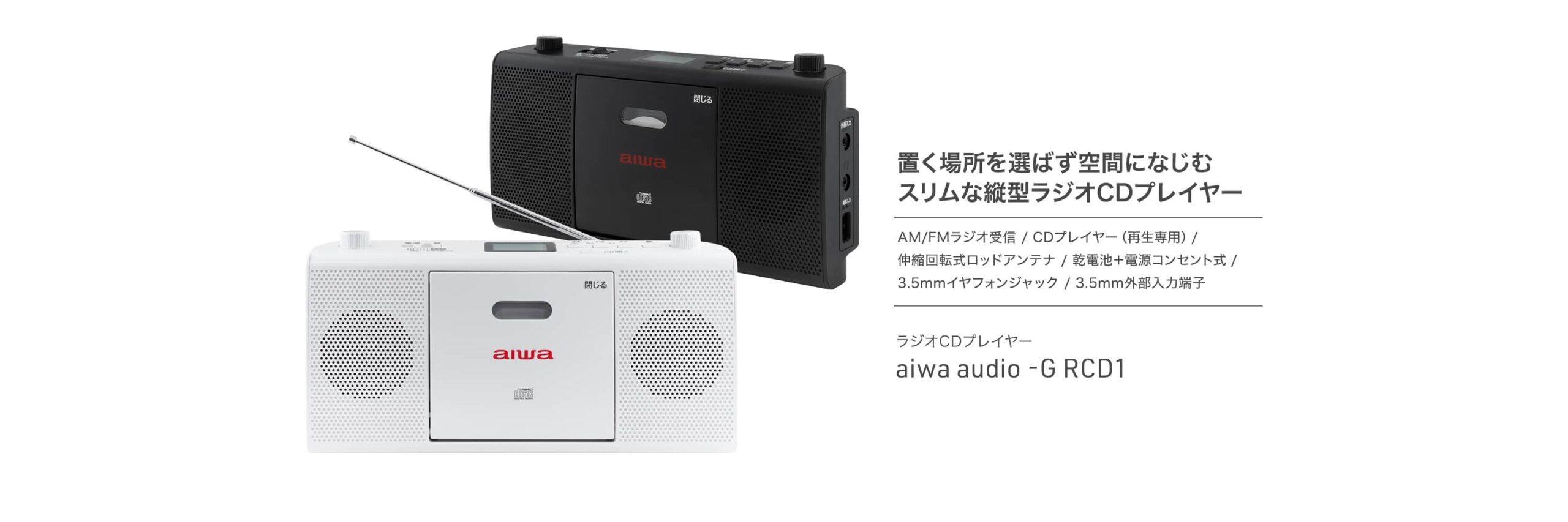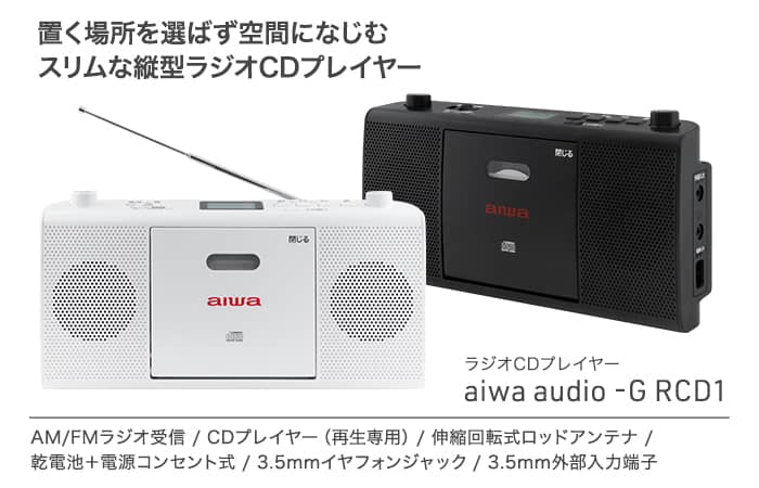スリムな縦型デザインと、選べる白と黒のカラーリングで、どんな部屋にも自然に溶け込むCDプレーヤー&ラジオ。