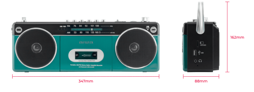 - 3.5mmマイク入力、3.5mmイヤフォンジャック、USBポート(USBメモリ用)、microSDスロット、電源コード差込口