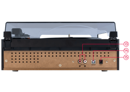 - USBポート、RCA出力端子、DC端子