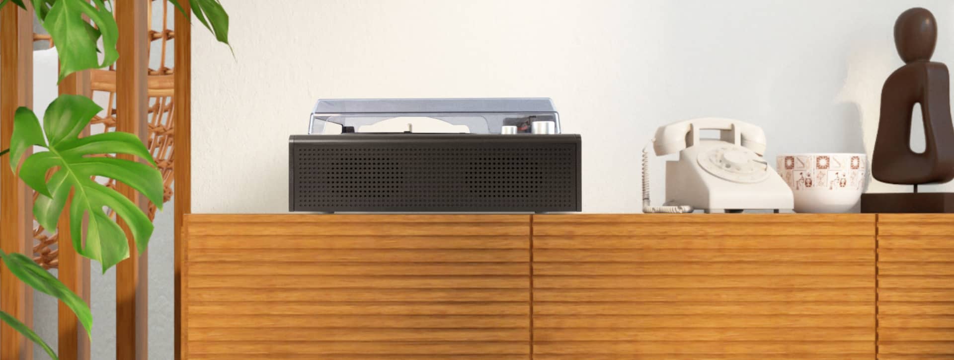 デュアルスピーカー内蔵ですぐにレコード鑑賞