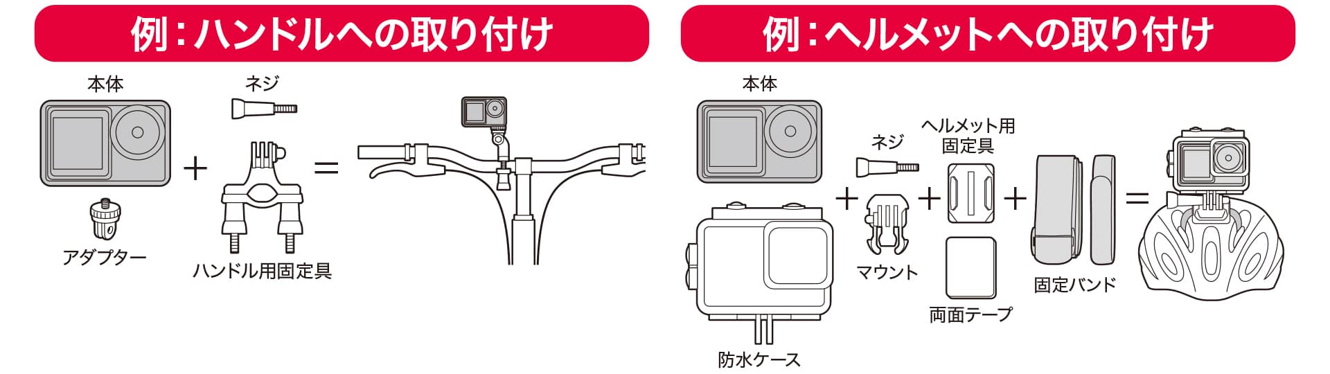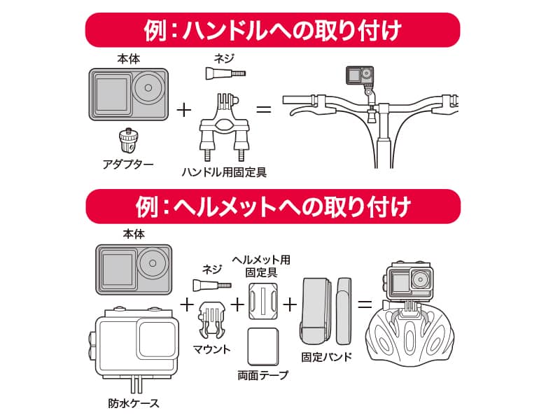 各種固定具やマウント、リモコンや外部マイクが標準で付属するので、組み合わせと工夫次第でどんなシーンでも活躍します。