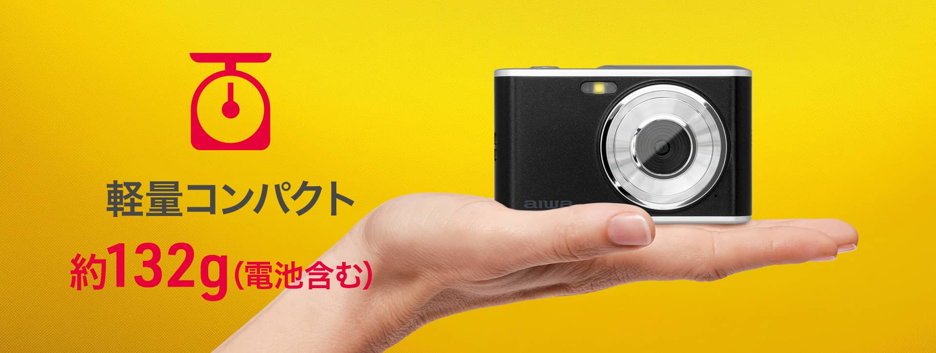 わずか132g(電池含む)と軽量で、手のひらにおさまるコンパクトサイズなのでどこでも気軽に持って出かけられます。