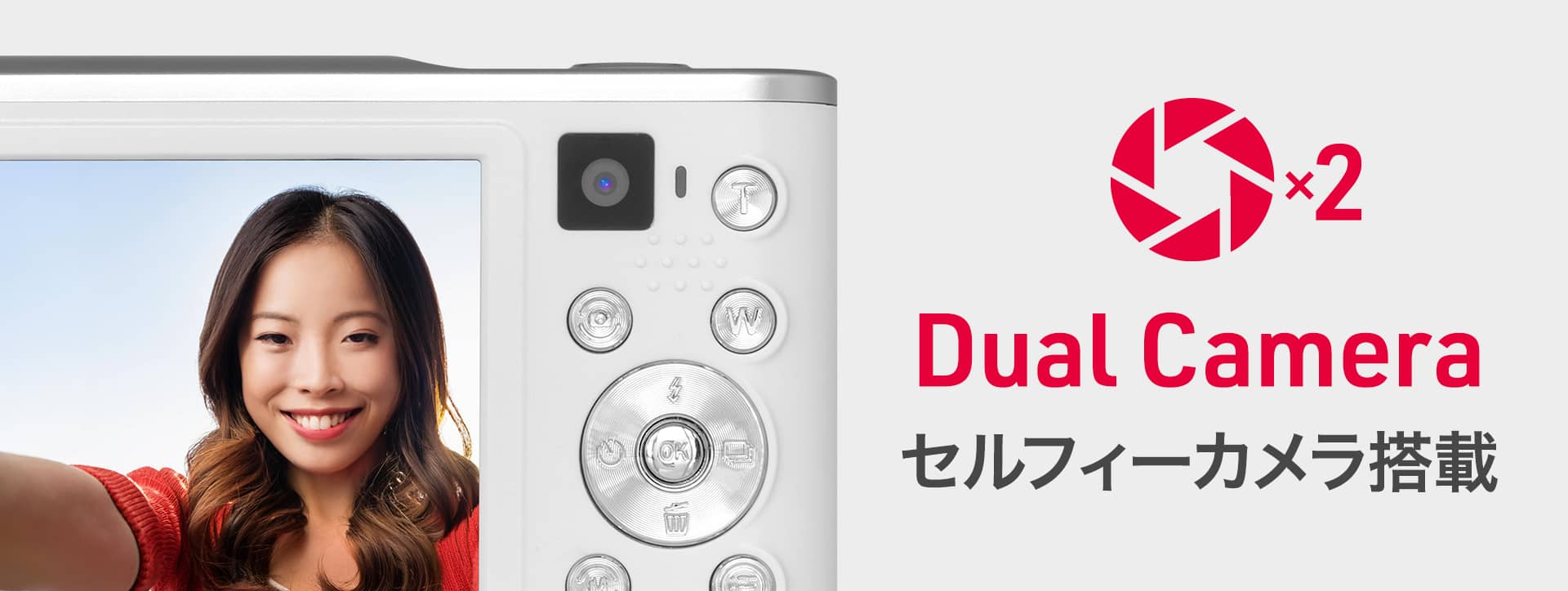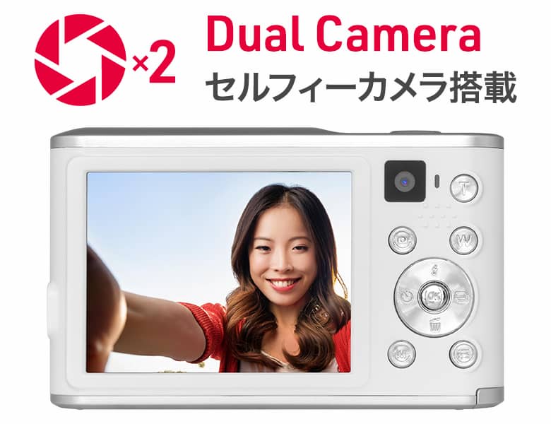 セルフィーカメラ搭載で、ディスプレイを見ながら自撮り撮影をすることができます。家族や友達など、大切な人との集合写真を撮影しながら自分も一緒に入れます。