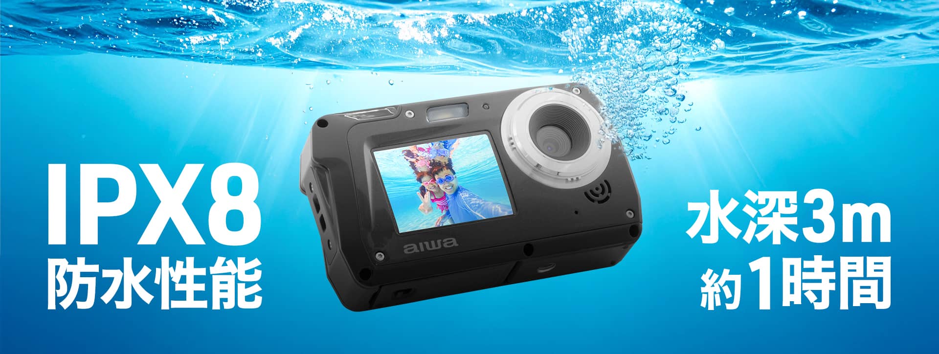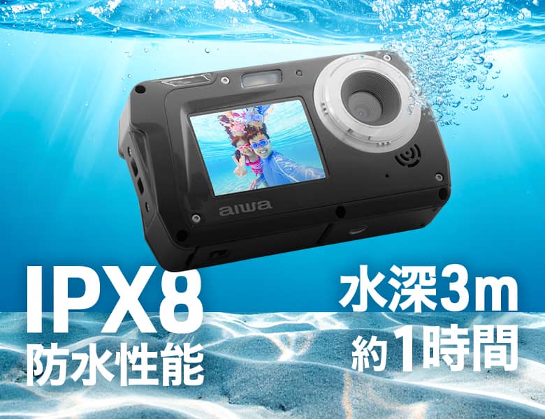 水深3mで約1時間使用できる防水設計なので、海や川、雪山などでも撮りたい瞬間をそのまま記録。
