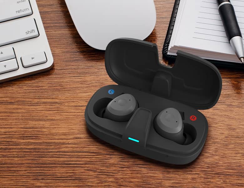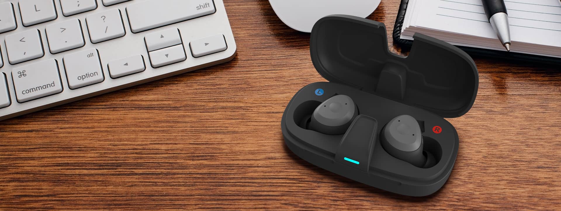 スタイリッシュなワイヤレス型で優れた集音機能。もちろんイヤフォンとして音楽も楽しめます。