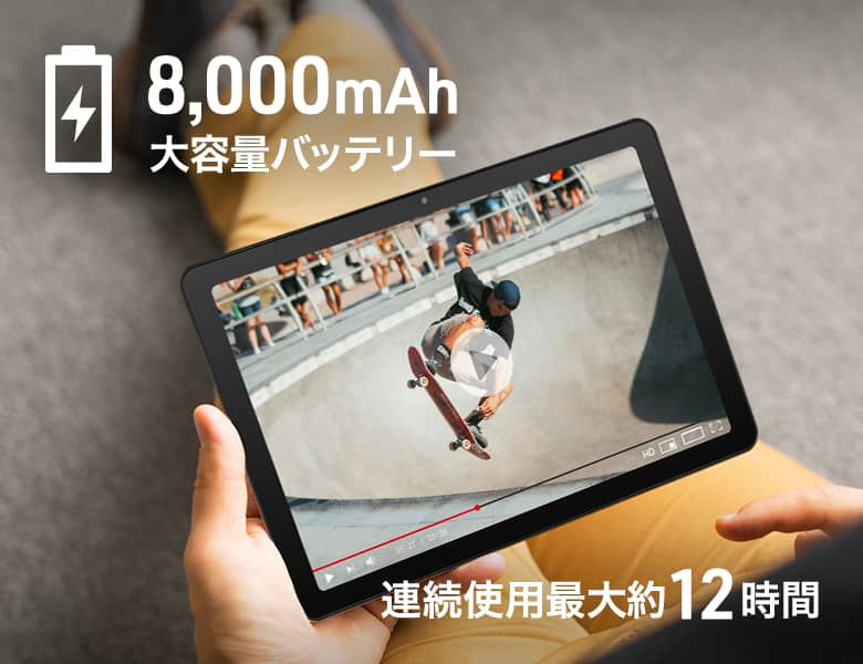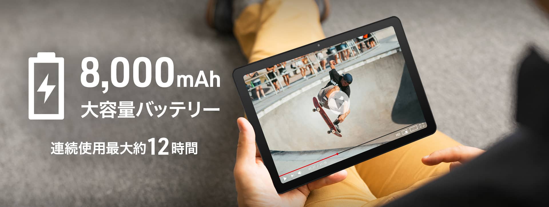 イラストの制作はもちろん、外出時や動画鑑賞、またはオンライン会議や授業でも、大容量8,000mAh長持ちバッテリーで安心。