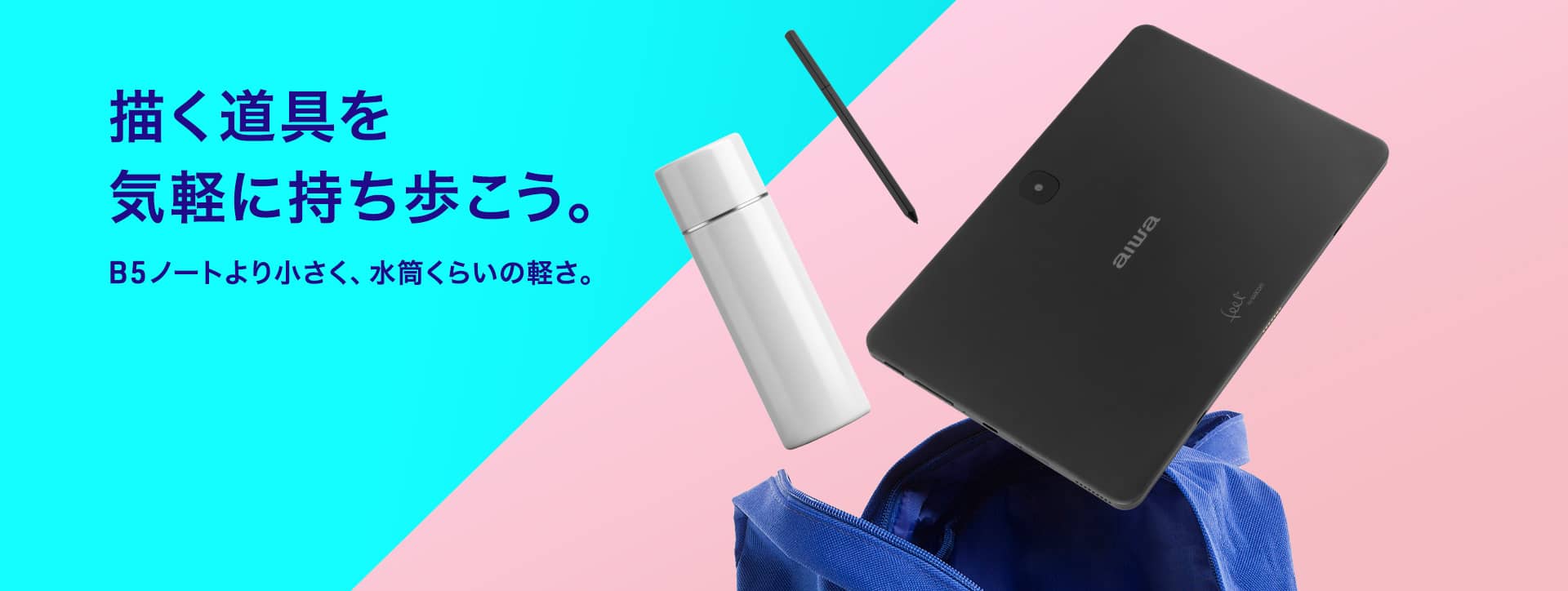 B5ノートよりひとまわり小さく、重さも小さめの水筒くらいだから、カバンにすっと入れて持ち運べます。