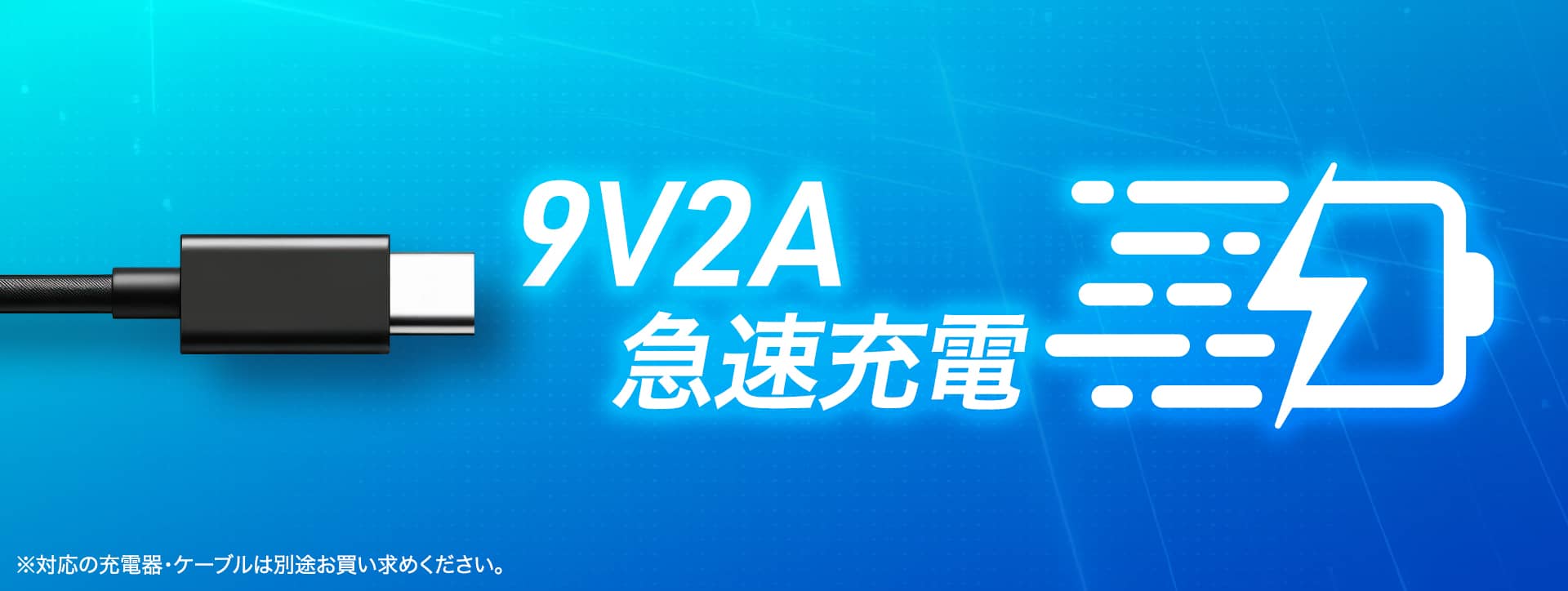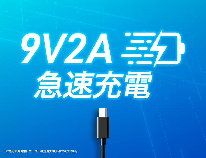 9V2Aの急速充電に対応しており、日常使いの中でも効率的な充電が可能です。